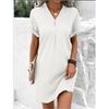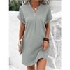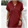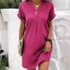 Women's V-Neck Solid Color Pullover Dress, Comfortable Casual Button-Down Midi Dress ,Casual V-Neck Solid Dress, Soft Pullover Style Button Dress