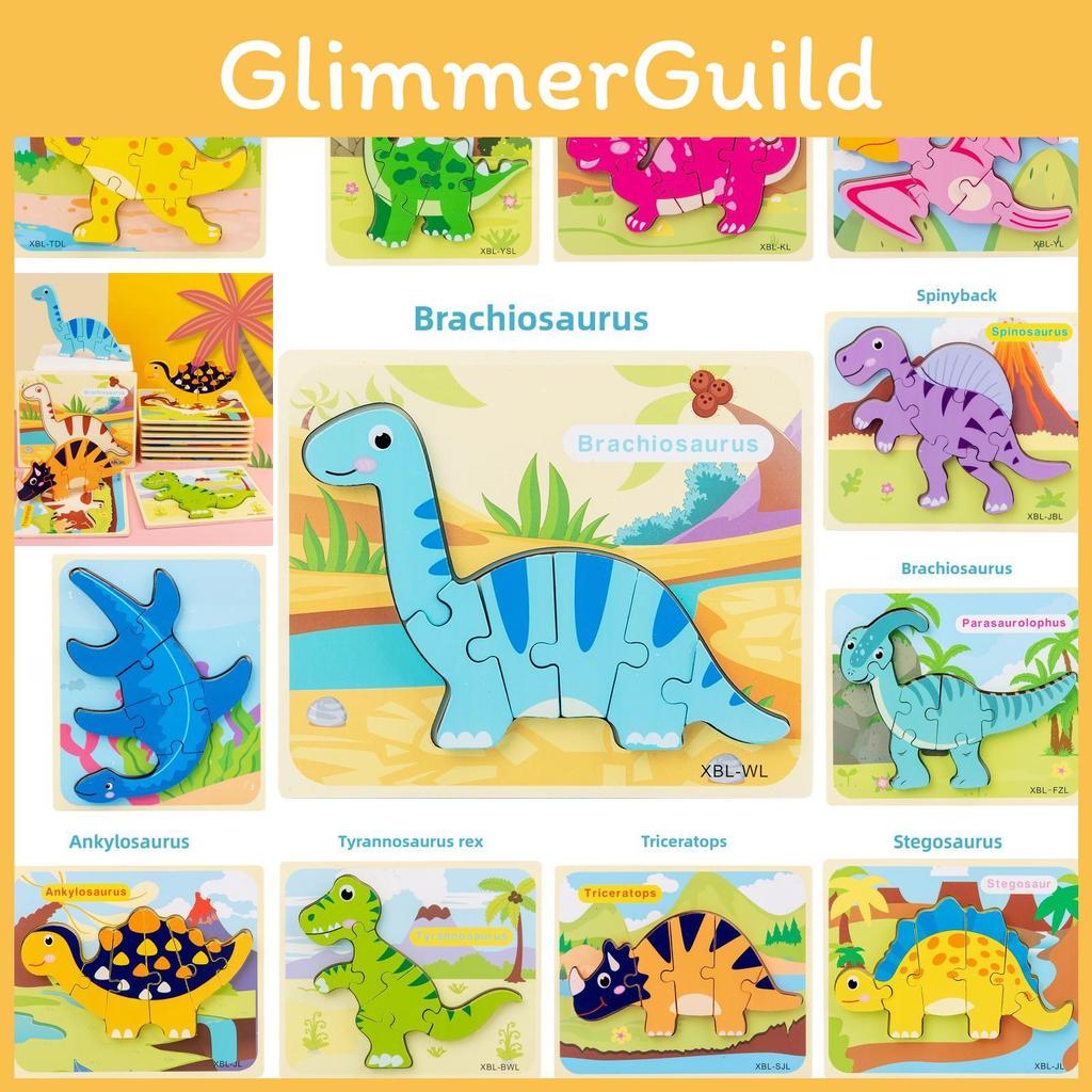 This 3D dinosaur puzzle board is crafted from durable wood. It features multiple dinosaur figures, including the Tyrannosaurus and Triceratops, designed for easy DIY assembly. Perfect for early childhood educational play, it supports cognitive development and fine motor skills. Wipe clean with a damp cloth for maintenance.