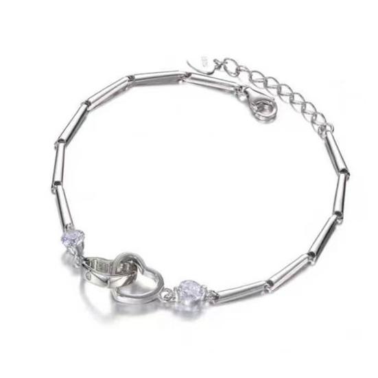 Women Bracelet Heart-Shaped Design Sparkling Cubic Zirconia Inlaid Bracelet Adjustable Chain Bracelet Jewelry Gift