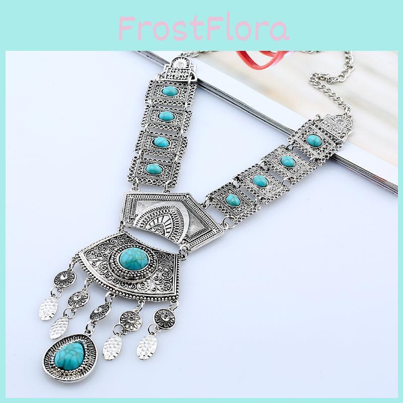 Ethnic Style Simulation Gemstone Decor Women Metal Necklace With Tassel For Boho Fashion Jewelry