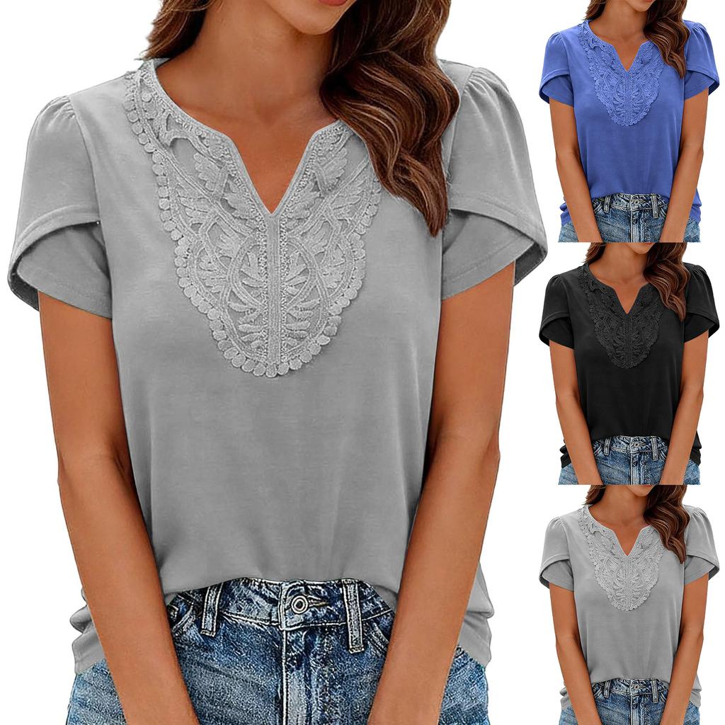 Women Loose Lace V Neck Dressy Business Casual Tops Blouses Elegant Petal Sleeve Shirts