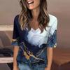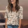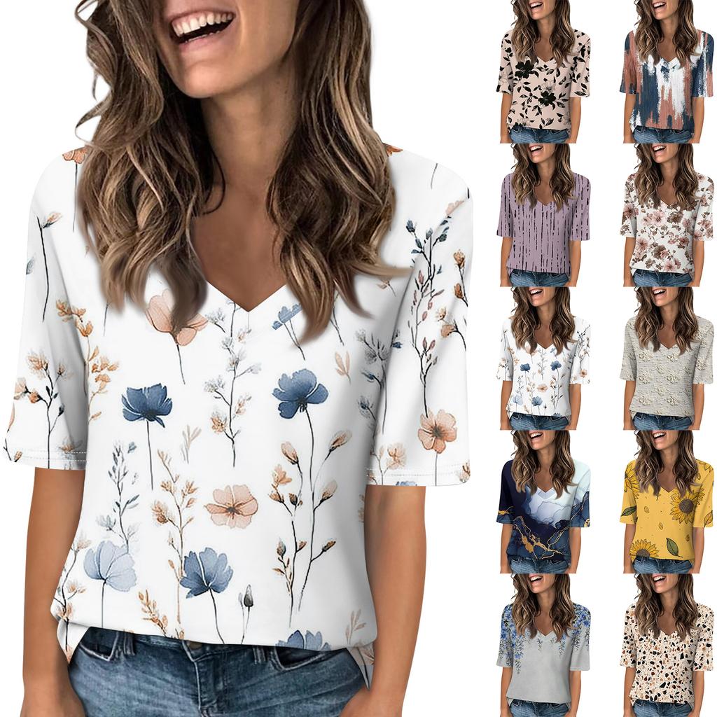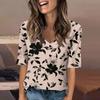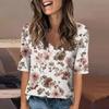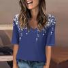 Women's Fashionable Casual Short-sleeved Five-quarter Sleeve Floral Print V-neck Top