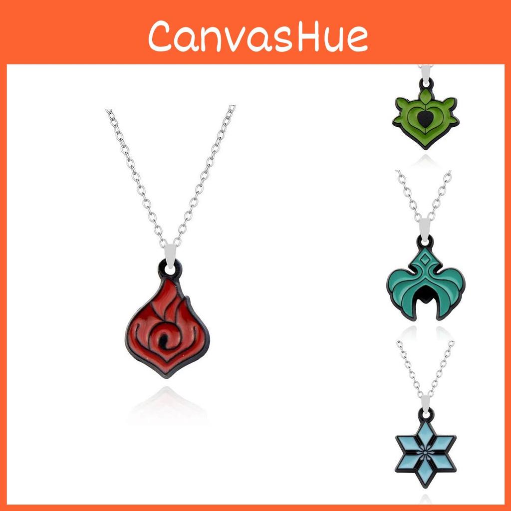 New Genshin Impact Elemental Vision Pendant Necklace Set Stylish Alloy Leaf Design