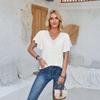 Women's Fashionable Casual Lace V-Neck Ruffle Sleeve Loose T-Shirt
