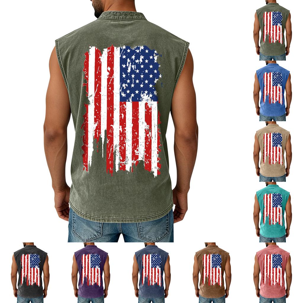 Men's Printed Washed Sports Button Pocket Sleeveless Vest