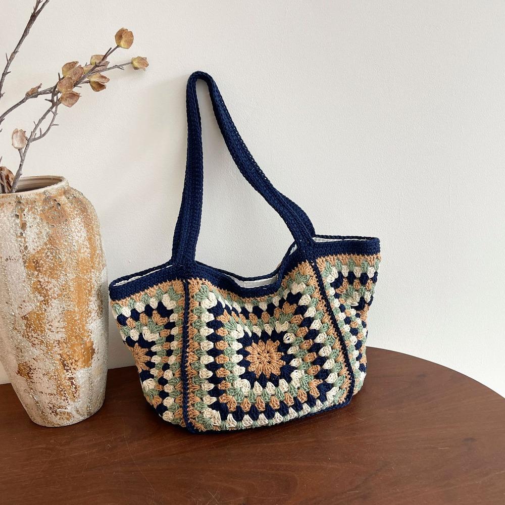 Braided Hollow Out Knitted Weave Bag Ethnic Style Beach Bag Sweet Crochet Tote Bag Beach