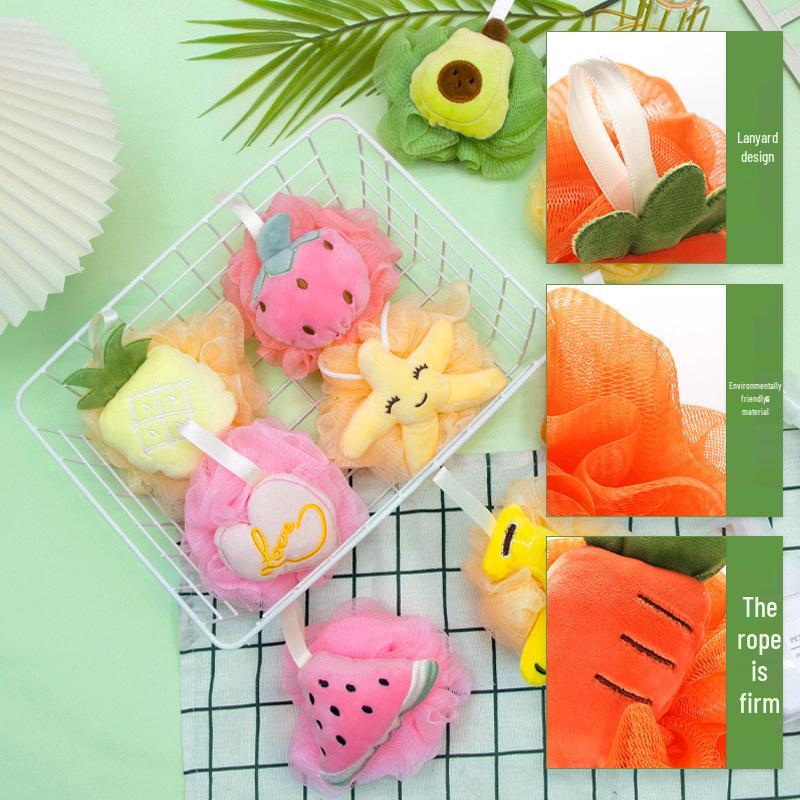 Creative Fruit Bath Flower: Cartoon Bath Ball & Foaming Net Scrubber
