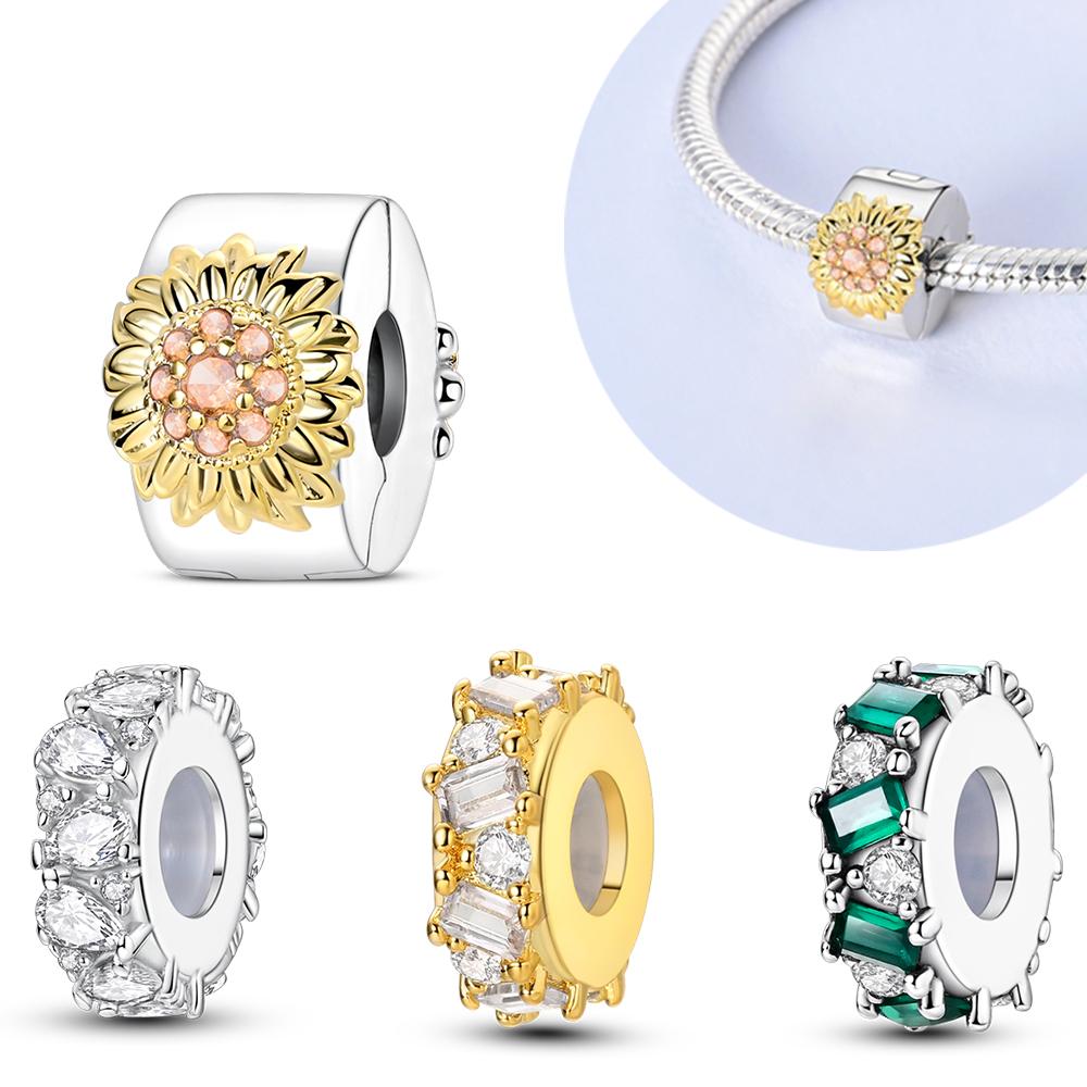 Copper Colors Blooming Sunflower Fixed Clip Bead Charms Compatible With Authentic Bracelets Do It Yourself Fine Jewellery Gift for Women