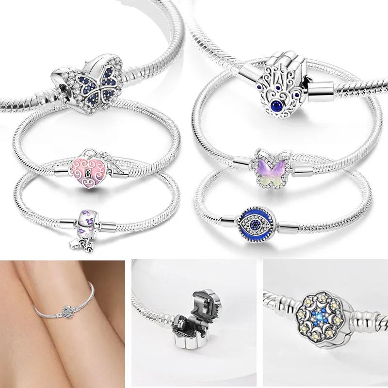 Sliver Bracelets Heart Lucky Eyes Bracelets Female Anniversary Party Fine Bracelets Bangles Jewellery Gifts for Women