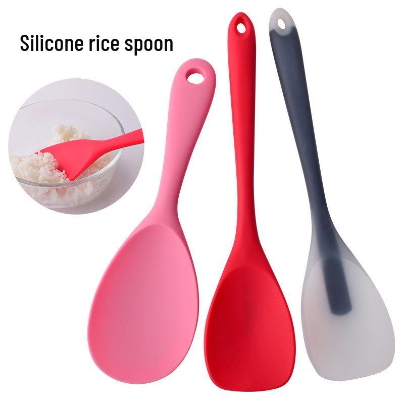 Silicone Non-Stick Rice Paddle and Spatula Set: Duckbill Scraper, Stir-Frying Spoon, Serving Spoon.