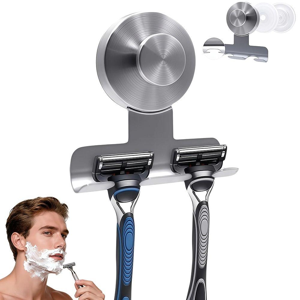 Stainless Steel Razor Rack Vacuum Suction Suction Cup Shaver Holder 304 Stainless Steel Razor Rack Double Hook For Bathrobes