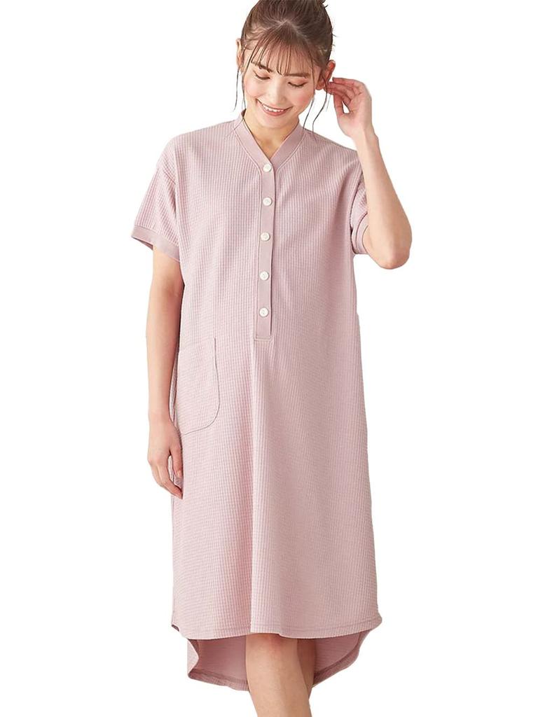Fairy Maternity Pajamas Waffle Knit Nightgown Can Be Used Long After Childbirth Suitable for and Nursing Loose with Pockets Pink 10357102 [Inujirushi