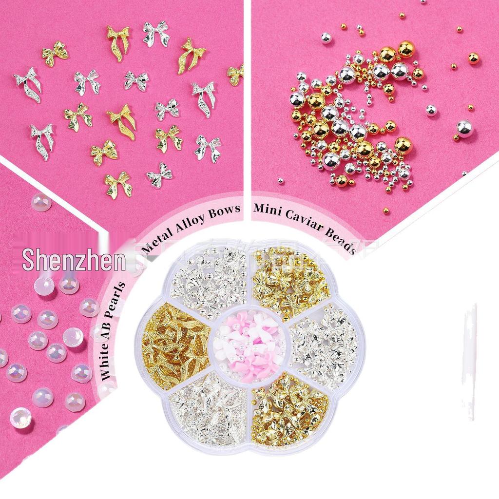 2026 Trendy Nail Art Rhinestones: Mixed Styles Metal Bow, Flat-Backed, Seven-Grids Nail Decorations