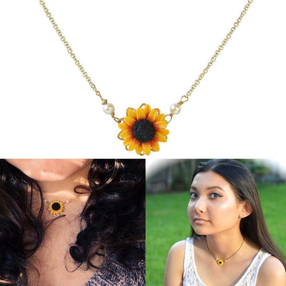 Charm Romantic Jewelry Pearls Flower Pendant Sunflower Necklace Chain Gold Plated