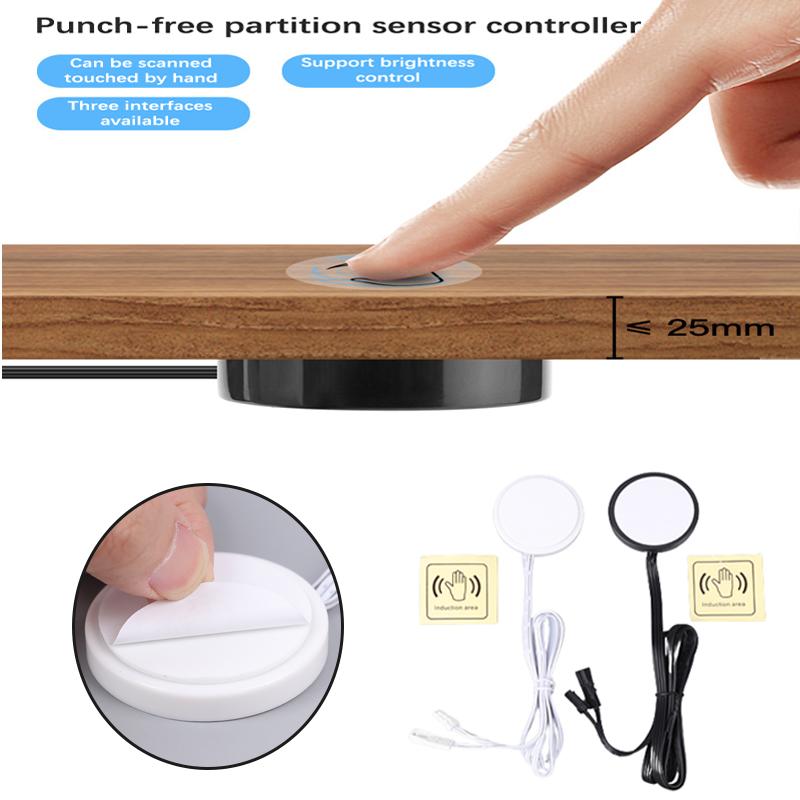 1PCS Black/White Sweep Dimmer Sensor Penetrating Switch 12V-24V Wood Panel Touch Switch LED Dimmable Touch Sensing Hidden