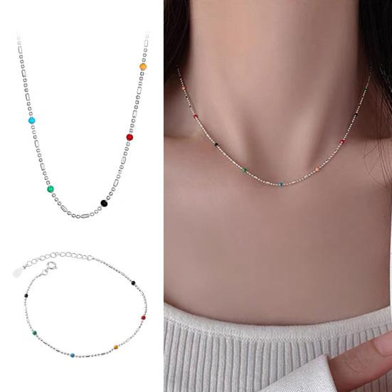 This exquisite necklace features a delicate silver or silver-plated chain with a high-end metallic luster, offering both elegance and comfort. Adorned with small, round beads in vibrant colors including red, green, blue, orange, and black, the evenly distributed hues create a rhythmic and eye-catching design.