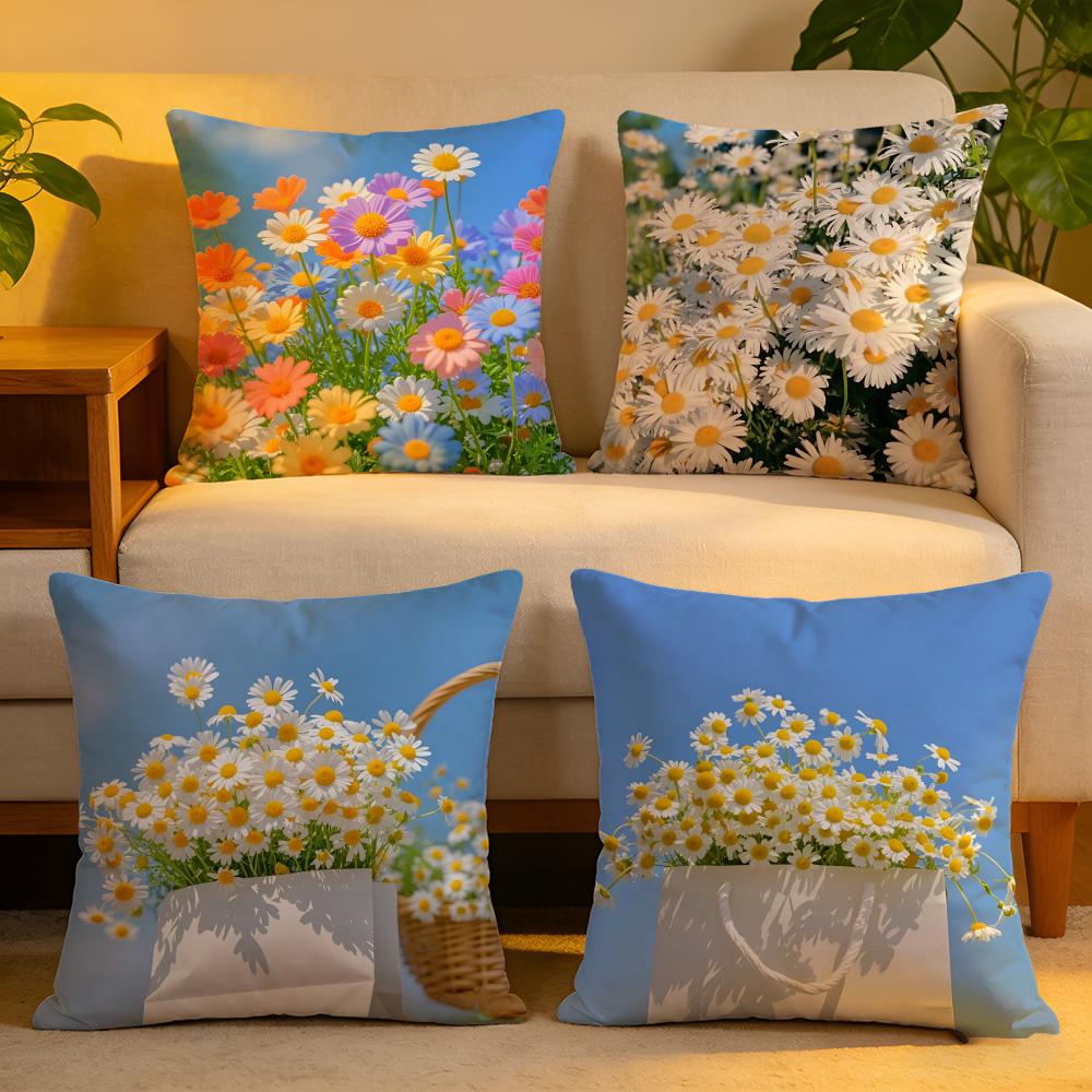 Cushion Cover Linen SkinFriendly Soft Decorative Case For Sofa Home Decor Fashion Daisy Pillow Cover