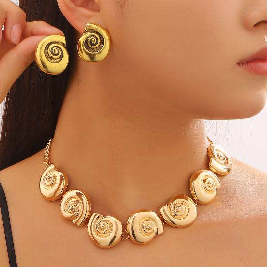 Inspired by marine elements like snails and conchs, the three-dimensional spiral texture captures natural forms with a striking metallic luster, ideal for beachwear and bohemian looks. Crafted using advanced alloy electroplating, the set boasts a bright, delicate surface that resists oxidation and fading for long-lasting elegance. The coordinated necklace and earrings offer effortless styling to complete your personalized fashion statement.