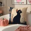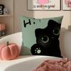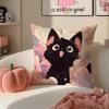 Cute Tiny Adorable Art Cartoon Little Black Cat Cushion Cover Pillowcase Short Plush Invisible Zipper Room Sofa Cushion Cover
