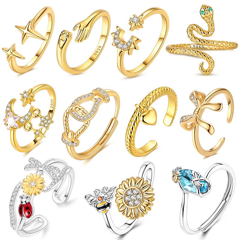 Copper Golden Collection Open Ring Authentic Star Shape Moon Zircon Wedding Anniversary Rings Jewellery Gift Ideal For Women