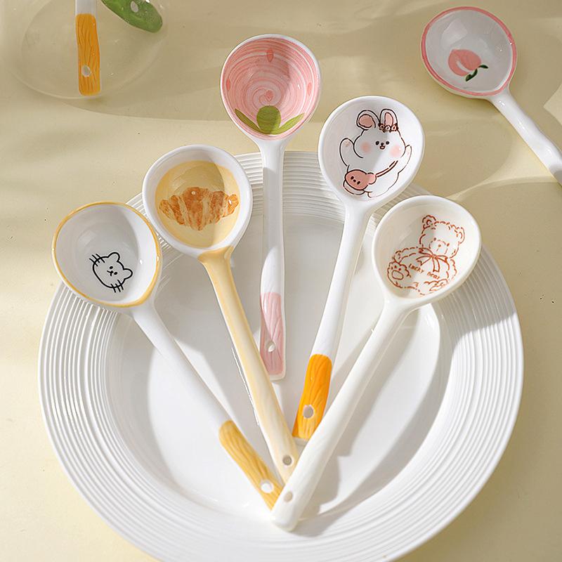 Ceramic Soup Spoon Cereal Spoon Cute Household Tableware Painted Coffee Spoon Jam Spoon Gift Dessert Scoop Kitchenware