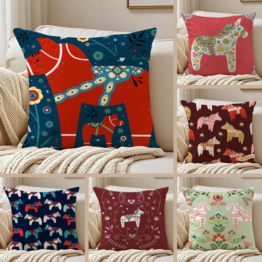 Cute Print Art DDala Horse Cushion Cover Pillowcase Antidustmite Invisible Zipper Short Plush Sofa Cushion