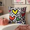 Sweet Graphic Element Lovely Heart Cushion Cover Pillowcase Short Plush Invisible Zipper Room Sofa Cushion Cover