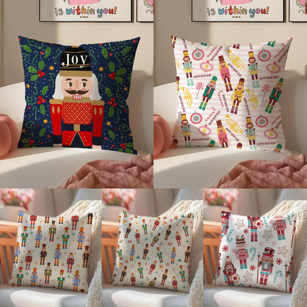 Festive Classic Nordic Toy NNutcracker Cushion Cover Pillowcase Short Plush Invisible Zipper Room Sofa Cushion Cover