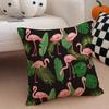 Forest Flamingo Palm Leaves Plant Pattern Art Cushion Cover Throw Pillow Cover Hidden Button Durable Polyester Chair Cushion