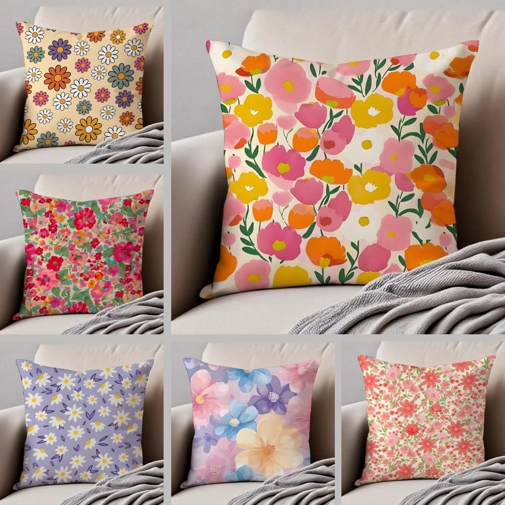 Full Print Floral Print Pattern Art Cushion Cover Throw Pillow Cover Hidden Button Durable Polyester Chair Cushion