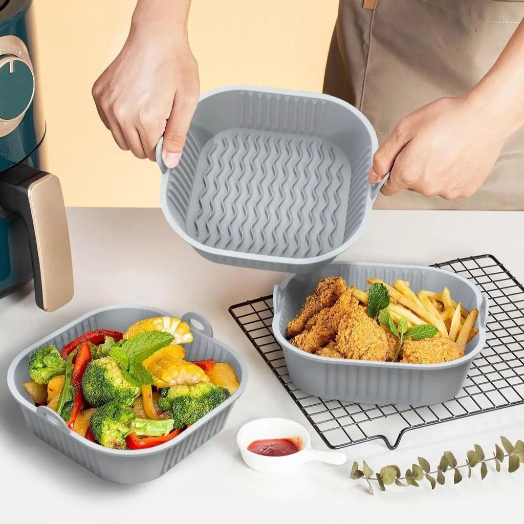 1PC- Silicone Air Fryers Oven Baking Tray Pizza Fried Chicken Airfryer Silicone Basket Reusable Airfryer Pan Liner Accessories