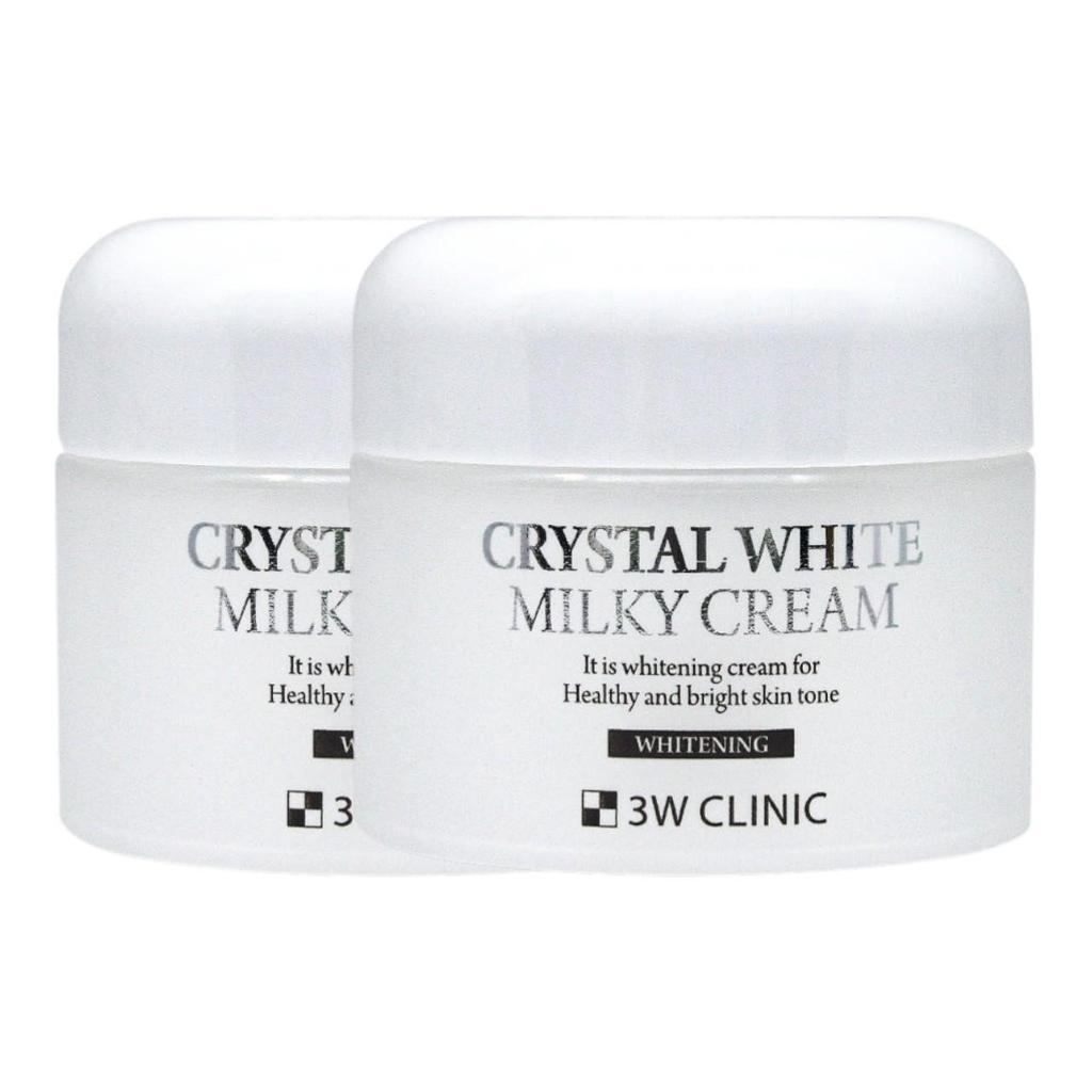 3w Clinic Crystal White Milky Cream 50g (Pack of 2) - Brightening & Tone-Up Moisture Cream with Niacinamide & Vitamin Complex