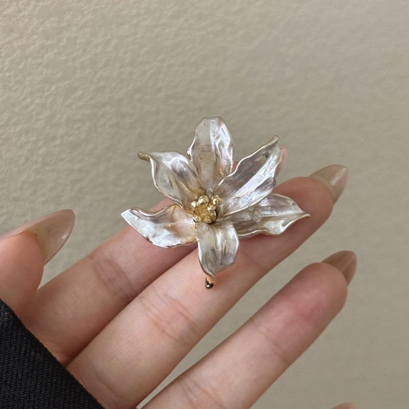Gold And White Contrast Glaze Tulip Flower Ring Ins High-End Square Women Finger Ring Jewelry Gifts