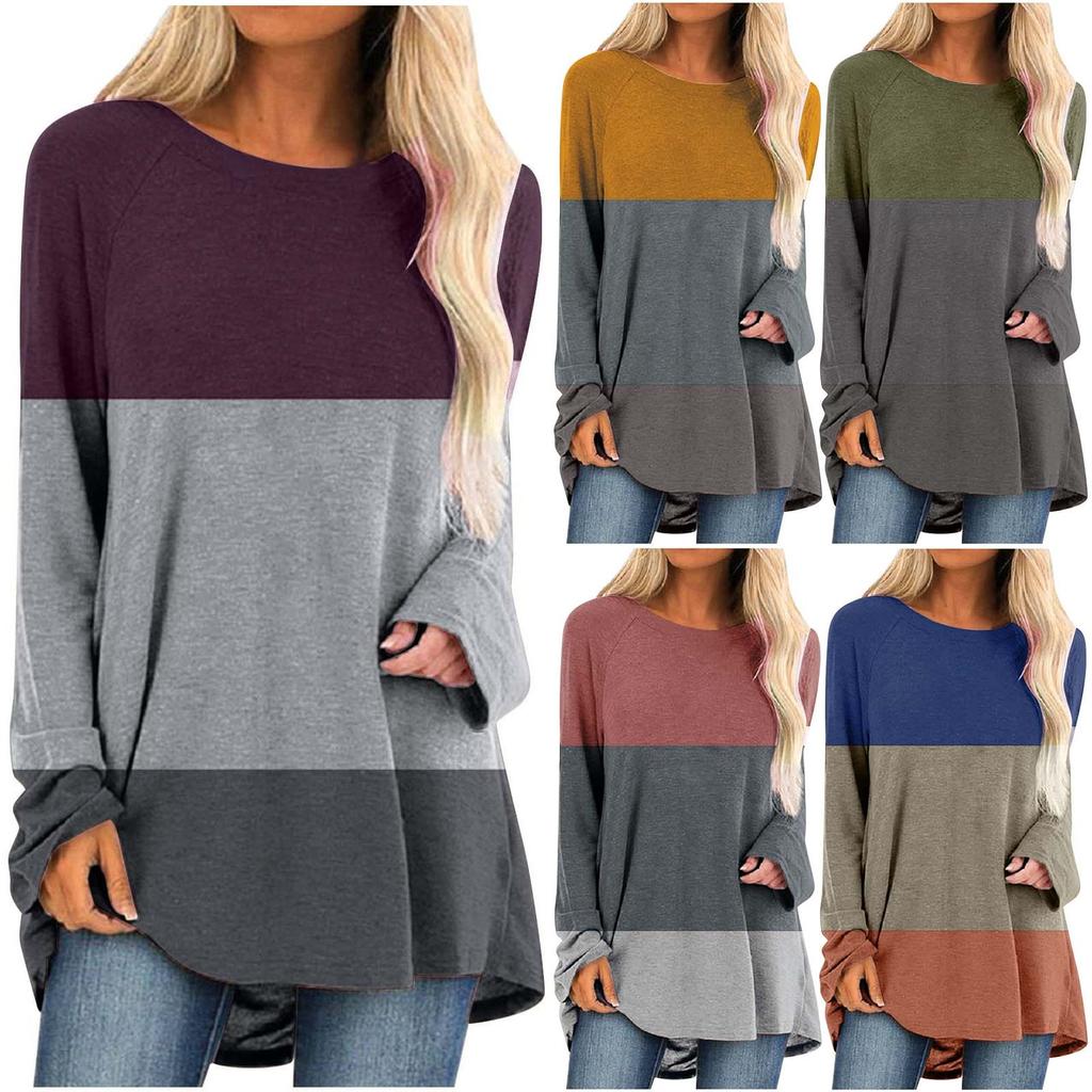 Women's Fashion Casual Irregular Patchwork Color Print Loose Medium Long Long Sleeve Top