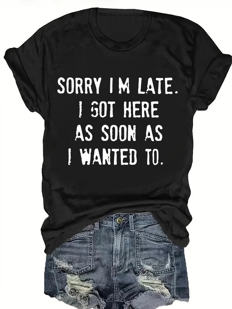 Womens Casual Sleeve Crew Neck TShirt SORRY IM LATE Letter Print Light Pink Graphic Summer Sleeved Harajuku Streetwear