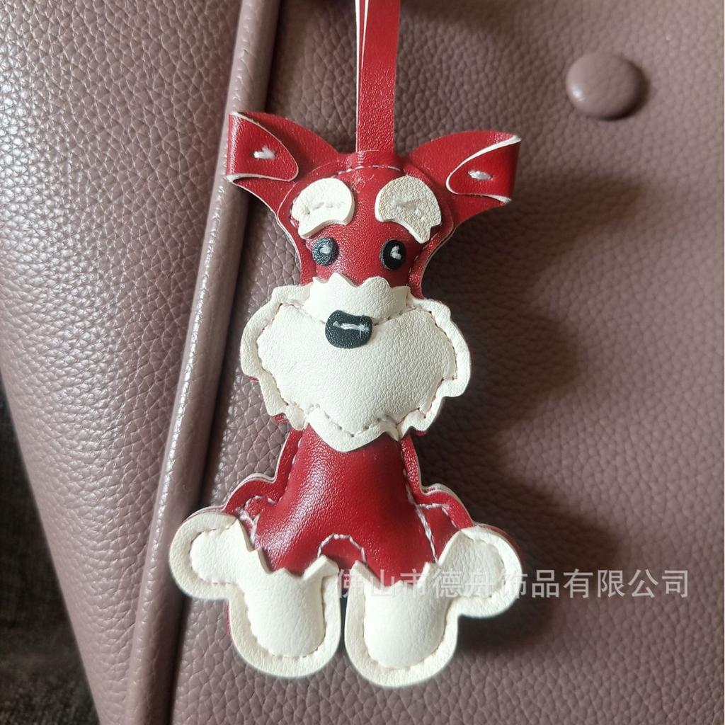 2025 Popular Schnauzer Dog Leather Gifts Personalized Creative Puppy Car Keychain Bag Pendant Wholesale