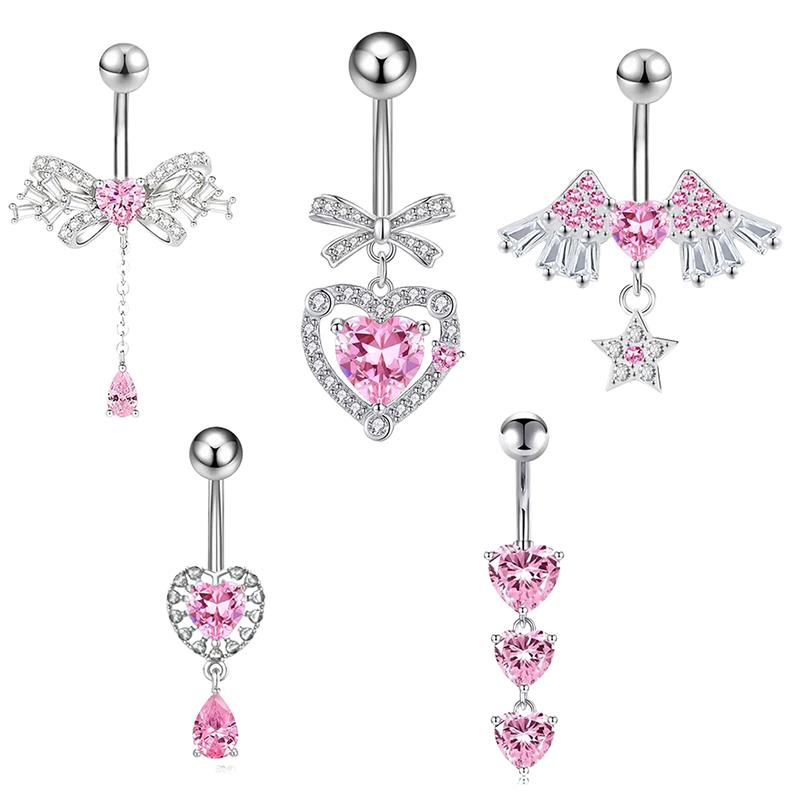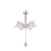 Pink Zircon Belly Button Rings Stainless Steel Heart Butterfly Navel Piercing Barbell For Women Beach Belly Ring Body Jewelry
