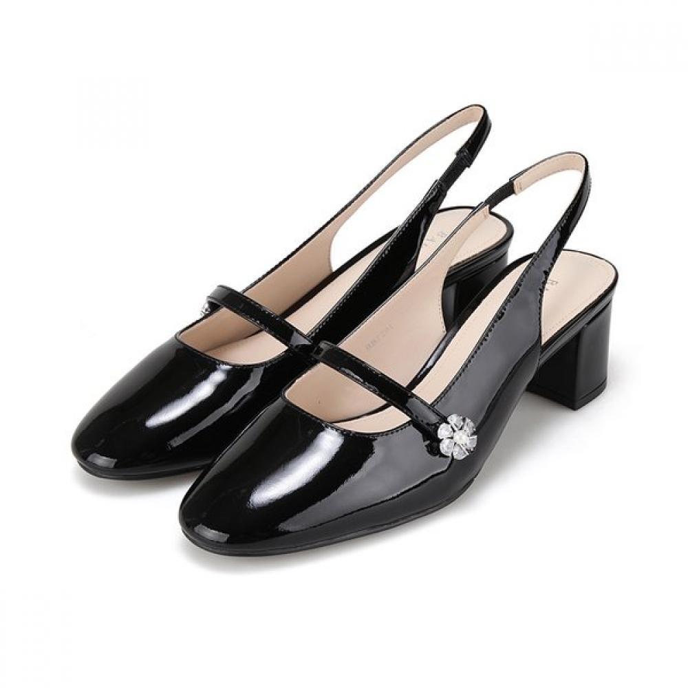 The cowhide patent jewel-point feminine slingback features a cute round shape and dazzling jewel decoration. The simple design, combined with the subtle sheen of patent material and colorful embellishments, emphasizes feminine charm even more. With an appropriate heel height of 5cm and stable fit, it pairs well with various outfits, making it ideal as daily wear.