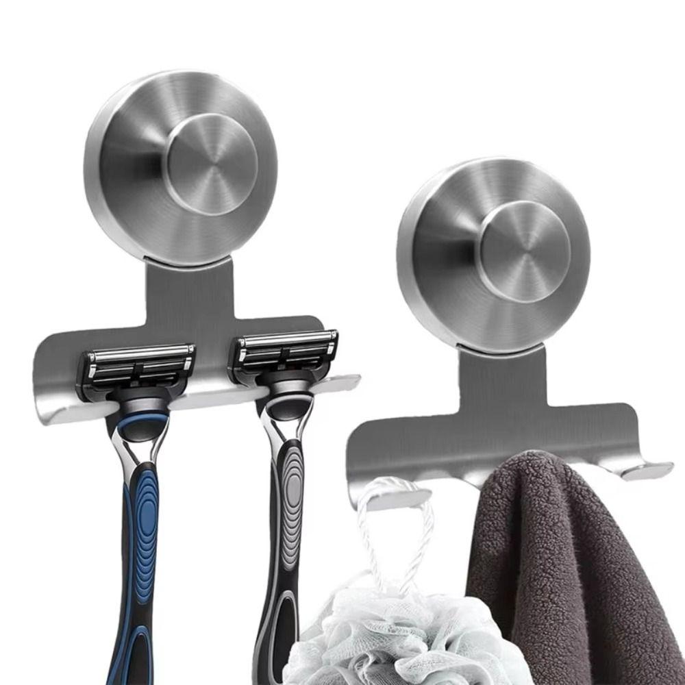 [Multi Scenario Application] Our bathroom shaver suction hook adopts widened hook slots and anti drop buckle accommodate most shaver sizes . It can also hang towels , loofahs , cleaning brushes , kitchen tools , etc . , making it versatile for use in bathrooms , kitchens , and balconies