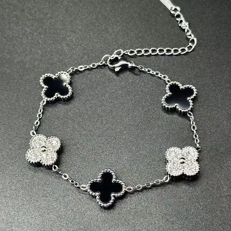 13mm Titanium Steel Double-sided Mother-of-pearl Four-leaf Clover Bracelet Colorfast Elegant and Luxurious for Couples