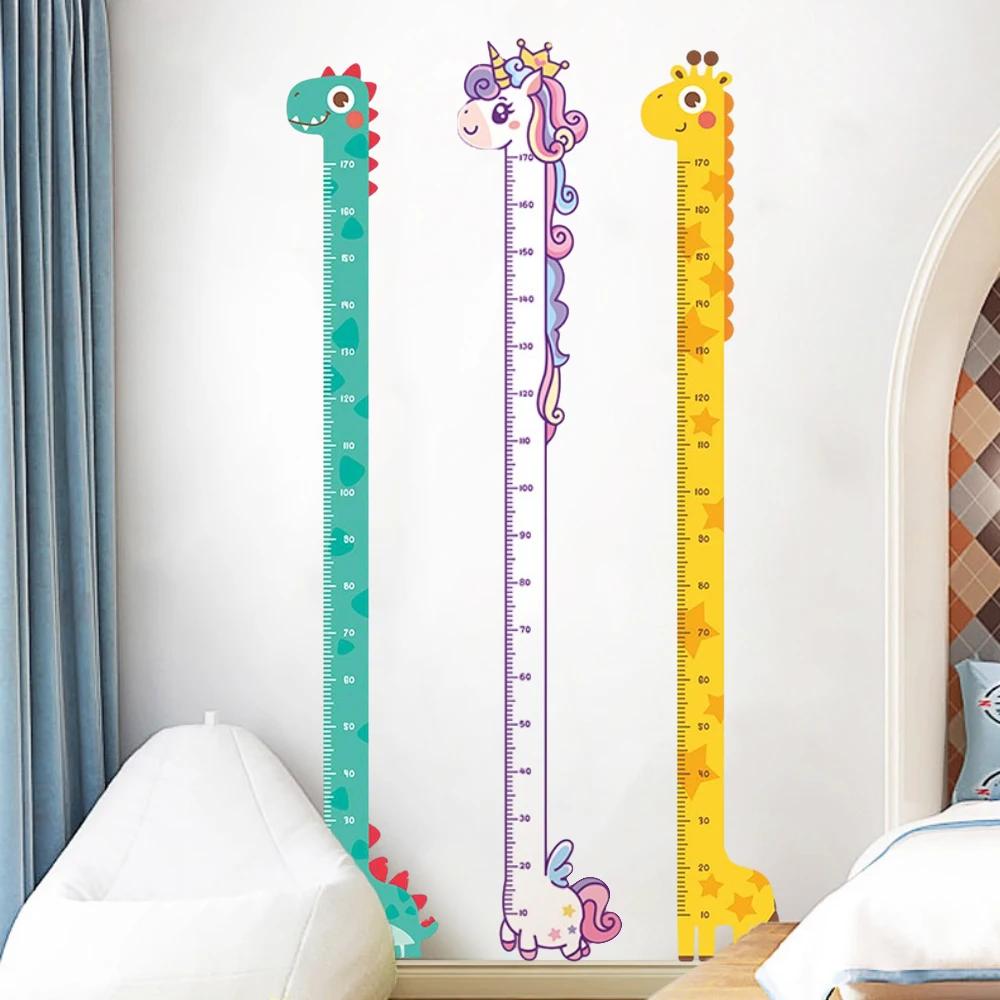 Cute Cartoon Height Sticker Unicorn Dinosaur Giraffe Wall Height Measuring Ruler Stickers For Kids Room Kindergarten Decor