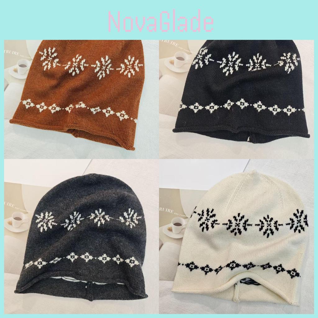 Knitted Beanie Hat For Women With Floral Pattern And Cold Weather Warmth Perfect For Autumn And Winter