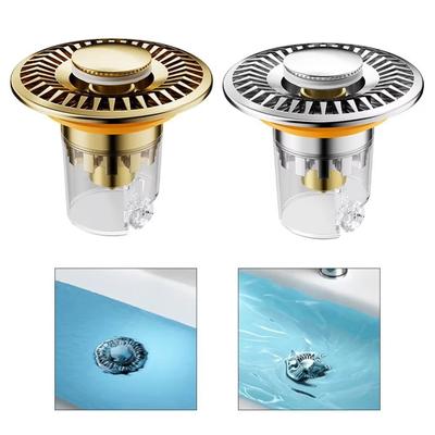Universal Pop-Up Bathroom Sink Stopper Odor-Resistant Press-To-Close Drain Plug for Washbasin Accessories Hair Catcher Strainer