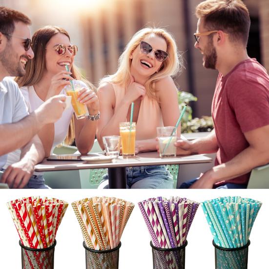 Each set includes 100 vibrant straws in red, blue, green, yellow, and more, ideal for parties of 30-50 guests. Suitable for cold drinks like juice, soda, cocktails, and milk tea, they add a stylish touch with bright, fade-resistant stripes that complement any celebration theme.