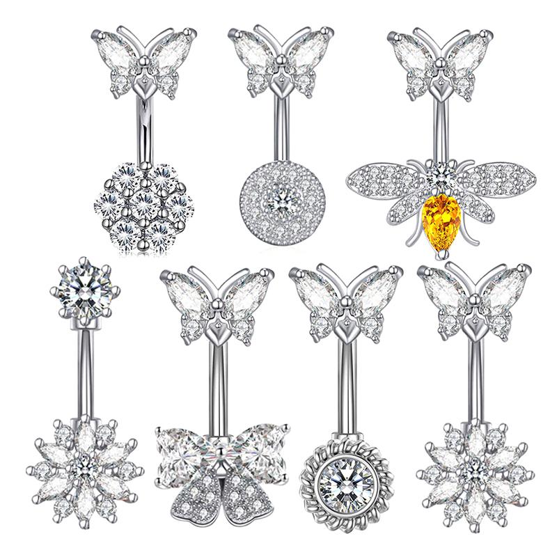 Butterfly Bee Belly Button Ring Stainless Steel Crystal Zircon Flower Navel Ring For Women Sexy Body Piercing Jewelry