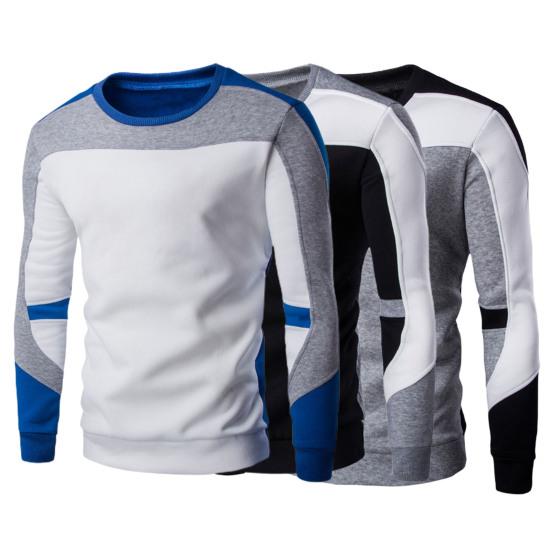 Men Sweatshirt Contrast Colors Patchwork Plush Thicken All Match Warm Autumn Sweatshirt for Work
