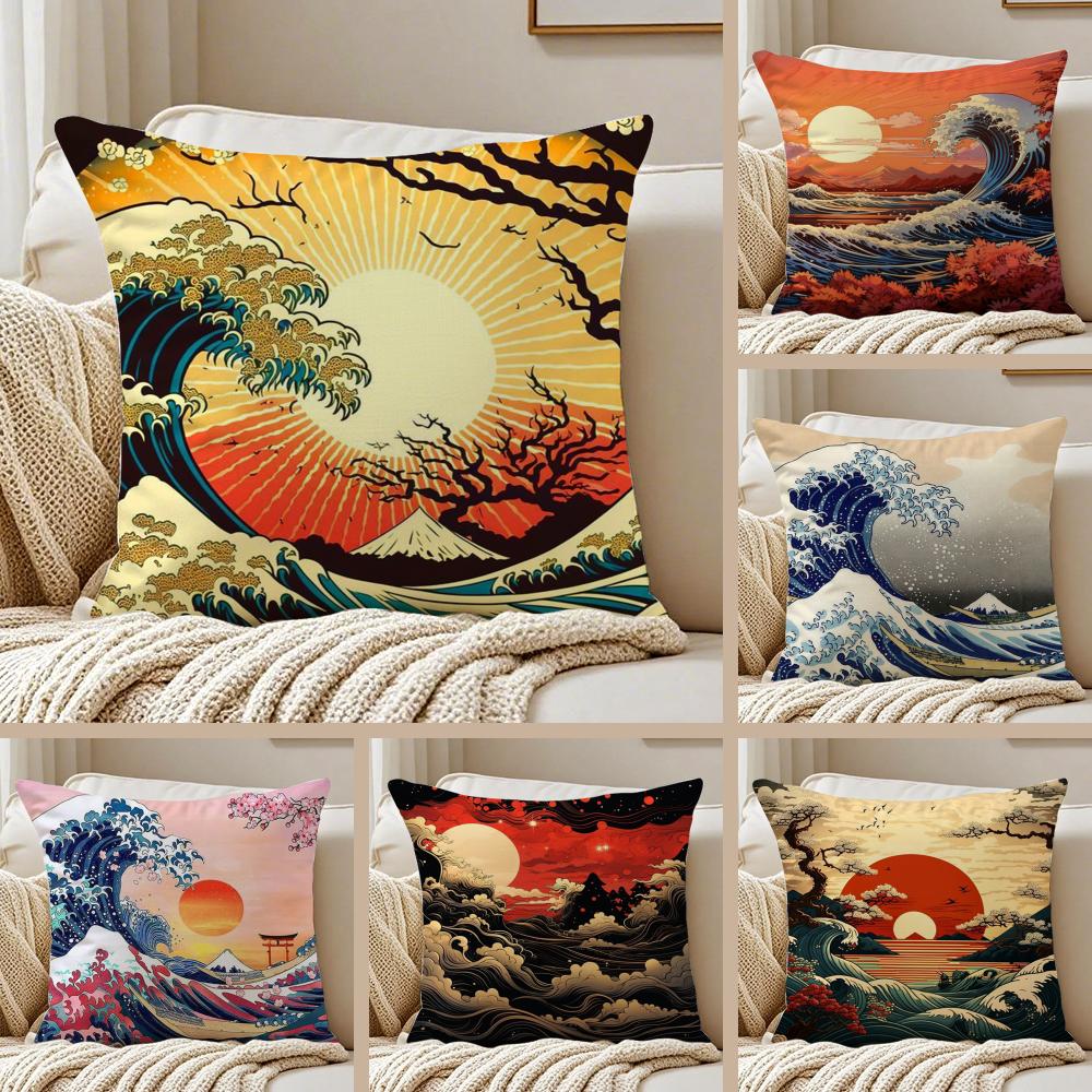 Japanese Waves Cushion Cover Silky Short Plush DoubleSided Printed Pillow Case for Sofa All Seasons Home Decor Gift