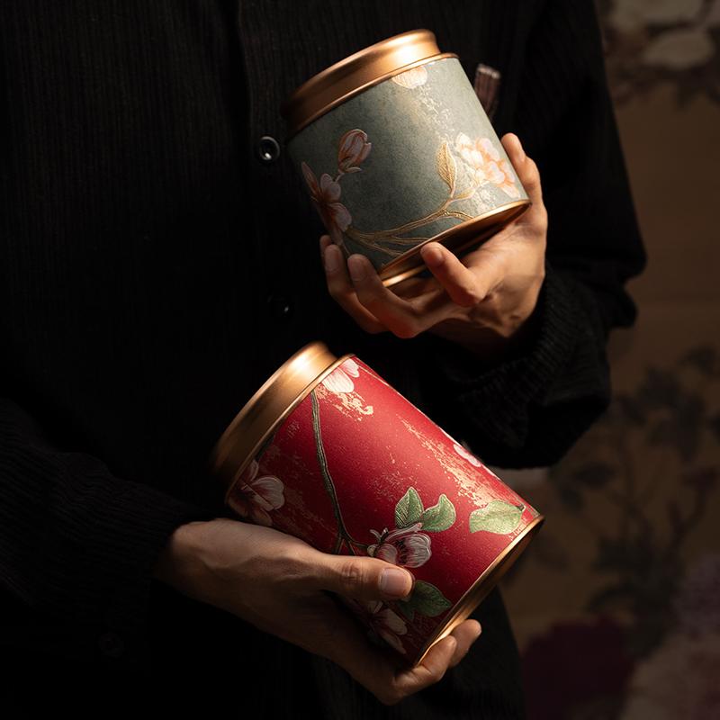 Kitchen Sealeds Canister Chinese Style Tea Box Convenient Exquisite Flower Prints Round Tea Tin Tea Storage Snacks Storage Box