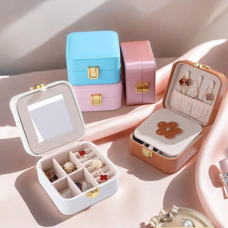 Mini Travel Jewelry Box Pu Leather Premium Sense Built-in Mirror Necklace Ring Earrings Portable Jewelry Box Organizer