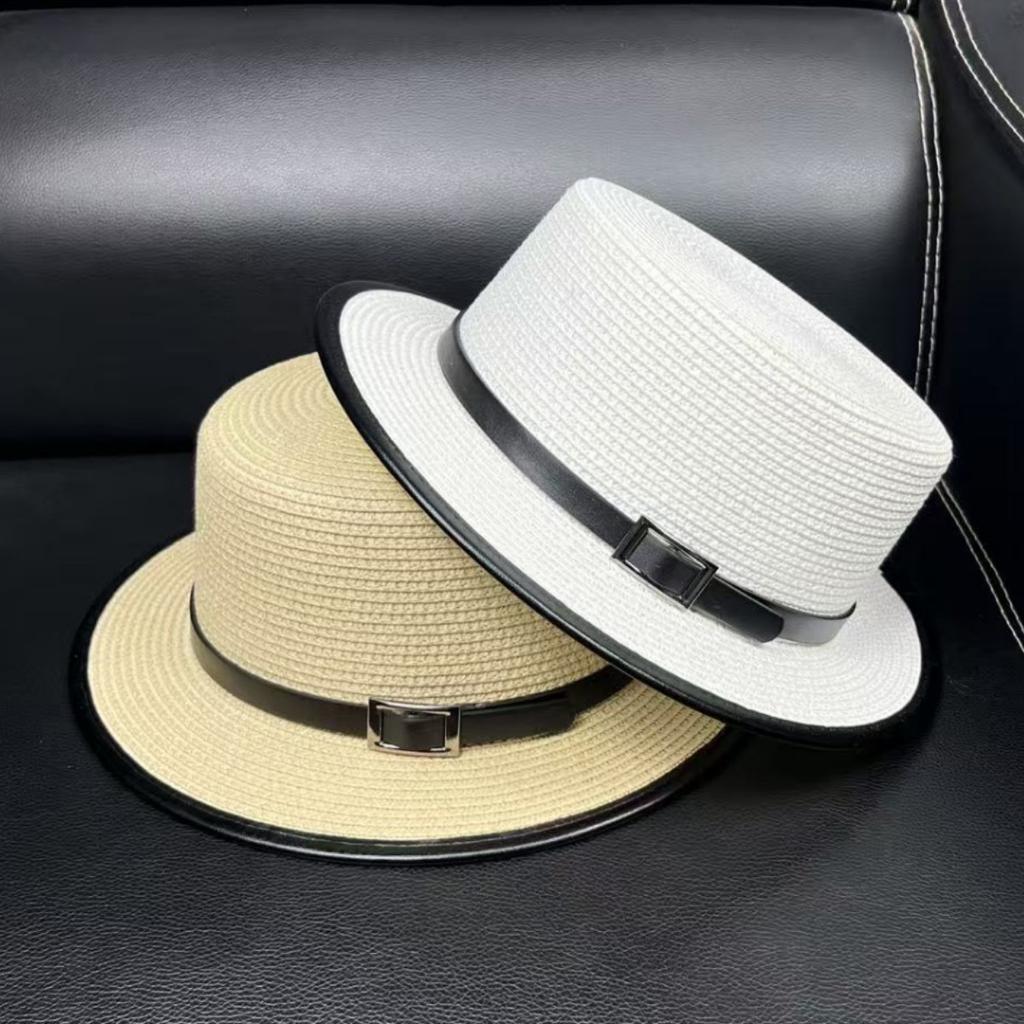Korean Version of White Flat-top Straw Hat Women's Summer Travel Sunshade Sunscreen Beach Hat Shopping Fashion Small Edge Top Hat